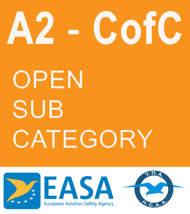 Για την λειτουργία drone στην υποκατηγορία A2, απαιτείται το «Πιστοποιητικό Επάρκειας του εξ Αποστάσεως Χειριστή» A2 CofC (Certificate of Competence), το οποίο του επιτρέπει να λειτουργεί σε αστικές περιοχές και κοντά σε μη-εμπλεκόμενα με την πτήση πρόσωπα ή συγκεντρώσεις ατόμων, με drone μέγιστου βάρους 4 kg..