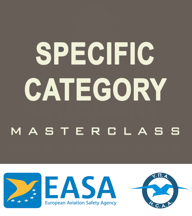 Το πρόγραμμα αυτό, που απευθύνεται κυρίως σε επαγγελματίες και οργανισμούς, εστιάζει, εκτός των άλλων, σε STS (Standard Scenarios), στην PDRA (προκαθορισμένη μέθοδο Αξιολόγησης Κινδύνων), στον σχεδιασμό και τρόπο υλοποίησης μίας αποστολής, στην BVLOS (λειτουργία πέραν της οπτικής επαφής), καθώς και στην δημιουργία Εγχειριδίου Πτητικής Λειτουργίας, ανάλογα με τις ανάγκες της εκάστοτε εναέριας εργασίας που πρόκειται να επιτελεστεί με μη-Επανδρωμένο Αεροσκάφος.Προϋπόθεση για αυτήν την εκπαίδευση, είναι η πιστοποίηση του χειριστή στην Ανοικτή Κατηγορία και η πτητική του επάρκεια.